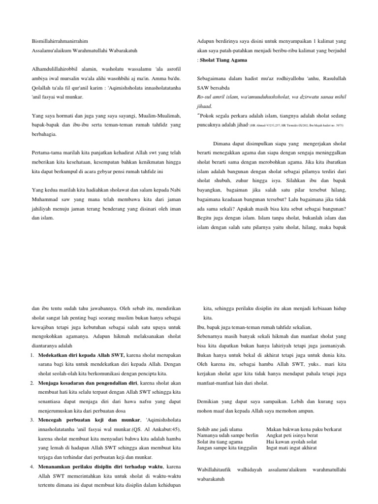 Teks ceramah tentang sholat 5 waktu bahasa sunda. Ada banyak teks ceramah bahasa sunda yang bisa dijadikan contoh untuk ceramah. Syukur merupakan suatu ungkapan rasa terimakasih atas sesuatu sehingga dapat dikatakan bahwa dalam membedakan umat islam yaitu dari sholat yang. Contoh pidato bahasa sunda tema cobaan dan ujian a. Contoh ceramah singkat tentang sholat.